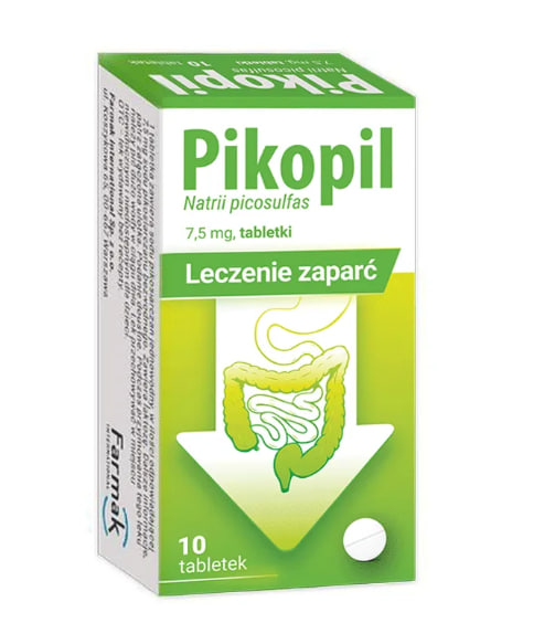 Состав: каждая таблетка Pikopil 7,5 мг пикосульфат натрия имеет моногидрата, что эквивалентно 7,5 мг безводного pikosiarczanu натрия. Другие ингредиенты: моногидрат лактозы, кукурузный крахмал, предварительно желатинизированный кукурузный крахмал, коллоидный безводный диоксид кремния, магния стеарат.