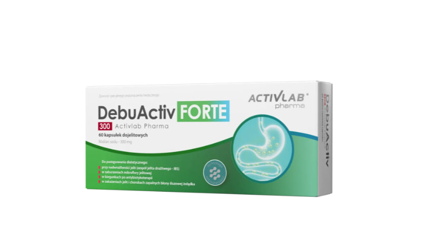 Описание продукта DebuActiv Forte 300 Activlab ® Pharma – узнайте подробности Продукты питания специального медицинского назначения. Для применения у взрослых и детей старше 7 лет. Продукт выпускается в форме кишечнорастворимых капсул. 1 капсула содержит 300 мг бутирата натрия в виде микрогранул. Бутират натрия — когда следует принимать кишечнорастворимые капсулы? Препарат DebuActiv Forte 300 Activlab ® Pharma предназначен для диетотерапии синдрома раздраженного кишечника (СРК). Его также можно применять при нарушениях кишечной микрофлоры, диарее , вызванной антибиотиками , кишечных инфекциях и воспалительных заболеваниях слизистой оболочки желудка.