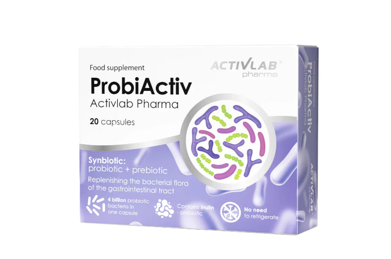 Описание продукта ProbiActiv Activlab Pharma — это пищевая добавка, содержащая 4 миллиарда тщательно отобранных штаммов бактерий в одной капсуле. Формула дополнительно обогащена инулином, полученным из корня цикория. Капсулы ProbiActiv Activlab Pharma Одна капсула ProbiActiv содержит 4 миллиарда бактериальных культур родов Bifidobacterium , Lactobacillus и Streptococcus , а также 250 мг инулина.