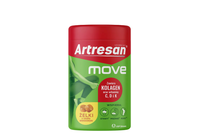Описание продукта Артресан® мов — это пищевая добавка в форме желе со вкусом ананаса, содержащая: коллаген, витамин С, витамин D и витамин К. Препарат предназначен для взрослых . Узнайте больше об активных ингредиентах препарата Artresan® move . Витамин С способствует правильному производству коллагена, что обеспечивает нормальное функционирование хрящей. Витамин D помогает поддерживать здоровье костей и мышц. Витамин К помогает поддерживать здоровье костей. Коллаген — основной структурный белок всех животных организмов. Он составляет приблизительно 30% всех белков в организме человека.