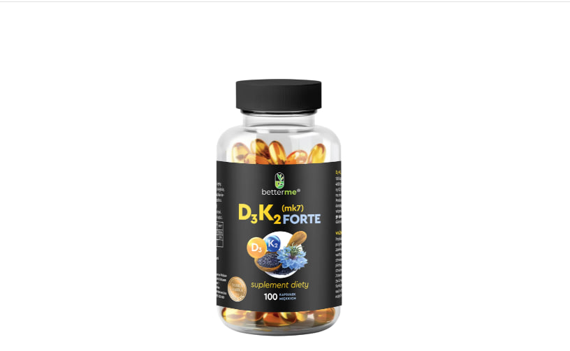 Описание продукта BetterMe D3+K2 Forte — это пищевая добавка, разработанная для дополнения ежедневного рациона взрослых. Одна капсула содержит 100 мкг натурального витамина К в форме менахинона-7 (MK7) и 4000 МЕ витамина D3. Кроме того, добавка обогащена маслом черного тмина холодного отжима , что максимизирует усвоение и биодоступность активных ингредиентов. Витамин К – свойства Способствует поддержанию здоровья костей . Способствует правильному свертыванию крови. Витамин D – свойства Это помогает поддерживать здоровье костей и зубов и способствует правильному функционированию мышц. Поддерживает правильное функционирование иммунной системы. Это способствует правильному усвоению/использованию кальция и фосфора , а также поддержанию надлежащего уровня кальция в крови. Оно принимает участие в процессе деления клеток. Благотворный эффект, достигаемый благодаря заявленному действию, проявляется при употреблении рекомендуемой суточной дозы продукта, которая составляет всего одну капсулу.