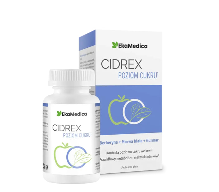 Описание продукта Cidrex Level Sugar от EkaMedica — это пищевая добавка в капсулах, предназначенная для взрослых. Формула сочетает в себе порошкообразный яблочный уксус, экстракт белой шелковицы , экстракт барбариса, стандартизированный по содержанию берберина гидрохлорида, экстракт гурмара, стандартизированный по содержанию гимнемовых кислот, корицу и хром . Капсулы Cidrex с регулируемым уровнем сахара – свойства активных ингредиентов Хром помогает поддерживать нормальный уровень глюкозы в крови и правильный метаболизм макронутриентов. Белая шелковица, барбарис, гурмар и цейлонская корица естественным образом способствуют поддержанию нормального уровня глюкозы в крови. Для достижения заявленных полезных эффектов рекомендуется принимать по две капсулы яблочного уксуса Cidrex Level Sugar ежедневно. Этот продукт с «чистым составом» не содержит искусственных красителей и ненужных добавок. Благодаря оболочке из растительной целлюлозы он подходит для веганов и вегетарианцев. Упаковка из 60 капсул обеспечивает месячный курс приема.