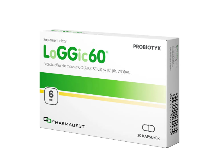 Описание продукта Pharmabest LoGGic60 — это пищевая добавка в форме желатиновых капсул, содержащая штаммы Lactobacillus rhamnosus GG (ATCC 53103) LYOBAC . Данная формула подходит в качестве ежедневной пищевой добавки для детей старше 3 лет и взрослых. Капсулы LoGGic60 ® для детей и взрослых Lactobacillus rhamnosus — это палочковидная молочнокислая бактерия, являющаяся естественным компонентом микрофлоры кишечника человека. Это один из наиболее тщательно изученных штаммов защитных бактерий. Каждая капсула LoGGic60 содержит до 6 миллиардов (6 x 10⁹ ) колониеобразующих единиц (КОЕ). Капсулы LoGGic60® удобны в использовании – их можно проглатывать целиком или открыть и смешать содержимое с молоком, соком или йогуртом, что облегчает прием добавки для самых маленьких детей.