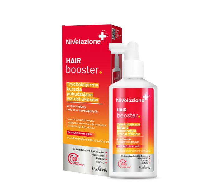 Описание продукта Специализированная линия косметики NIVELAZIONE ® — это альтернатива аптечным продуктам, разработанная на основе насыщенных концентрированных формул. Регулярное использование этой линии помогает решить проблемы кожи головы и волос и обеспечивает видимые результаты в короткие сроки. Farmona Nivelazione Hair Booster — это трихологическое средство, стимулирующее рост волос, представляющее собой высококонцентрированный лосьон, предназначенный для ухода за тонкими, ослабленными и склонными к чрезмерному выпадению волосами. Формула воздействует непосредственно на корни волос, поддерживая правильное функционирование волосяных фолликулов и улучшая состояние кожи головы. Этот продукт эффективно предотвращает чрезмерное выпадение и истончение волос, стимулирует рост новых волос и заметно утолщает их. Регулярное использование восстанавливает силу, жизненную энергию и здоровый вид волос, делая их более крепкими и устойчивыми к повреждениям.