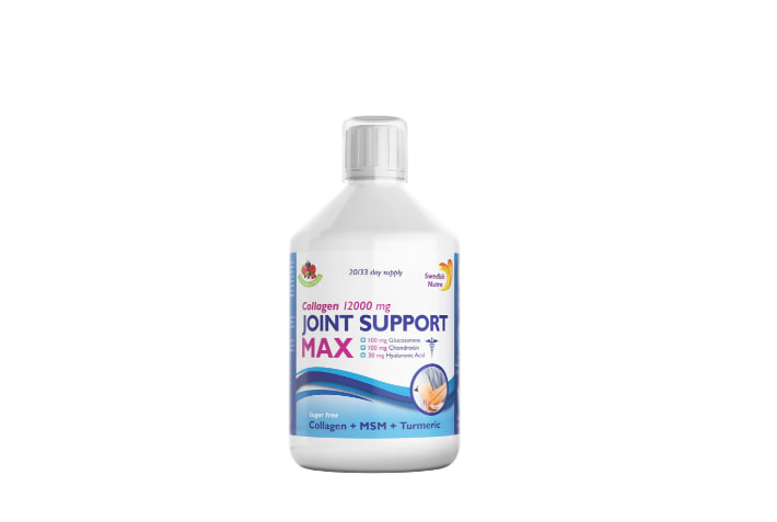 Описание продукта Swedish Nutra Collagen Joint Support Max 12000 мг — это пищевая добавка в виде питьевой жидкости с ягодным вкусом , содержащая гидролизованный коллаген типа I, II и III , обогащенная: органическая сера (метилсульфонилметан - МСМ), глюкозамина сульфат, хондроитин сульфат, гиалуроновая кислота, витамины: С и D, селен, сок куркумы (из концентрата). Этот продукт разработан для дополнения рациона взрослых , особенно тех, кто хочет поддержать правильное функционирование хрящей ( витамин С) и костей ( витамины С и D). Он не содержит добавленного сахара – подслащен сукралозой и ацесульфамом К. Жидкая формула облегчает употребление, делая его идеальным выбором для тех, кому трудно глотать капсулы или таблетки.