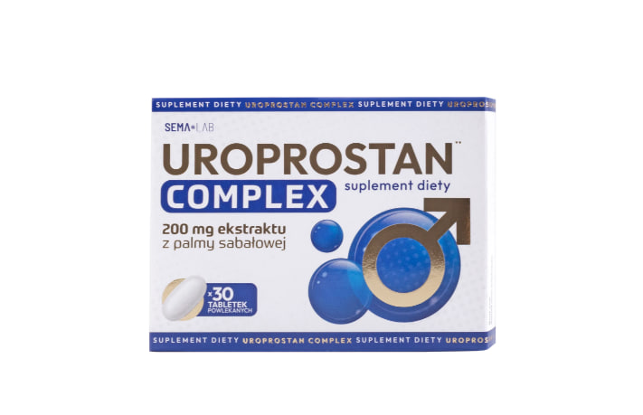 Его тщательно продуманная формула представляет собой композицию из 4 растительных экстрактов: из семян тыквы ( Cucurbita pepo ) DER 1 10:1; из плодов пальмы сабаль ( Serenoa repens ) DER 1 5:1, из корня крапивы ( Urtica dioica ) DER 1 20:1, из плодов томата ( Lycopersicon esculentum Mill .) DER 1 20:1, стандартизированный до 5% ликопена. В состав таблеток дополнительно включены цинк , селен, марганец и витамин Е. Таблетки «УроПростан Комплекс» — узнайте об активных ингредиентах и их действии. Экстракт пальмы сабаль оказывает естественную поддержку для поддержания здоровья и правильного функционирования предстательной железы и репродуктивной системы. Это растение также способствует поддержанию нормального функционирования мочевыводящих путей у мужчин старше 45 лет. Кроме того, оно может способствовать естественному росту волос у мужчин. Крапива помогает поддерживать здоровье предстательной железы. Кроме того, она поддерживает здоровье сердца, кровеносных сосудов и всей кровеносной системы . Цинк способствует нормальной фертильности и репродуктивной функции, а также поддержанию нормального уровня тестостерона в крови. Он поддерживает защиту клеток от окислительного стресса и способствует нормальному синтезу ДНК. Селен способствует правильному протеканию сперматогенеза и помогает защитить клетки от окислительного стресса. Марганец способствует защите клеток от окислительного стресса. Он вносит вклад в нормальный энергетический обмен. Он также помогает поддерживать здоровье костей и правильное формирование соединительной ткани. Витамин Е помогает защитить клетки от окислительного стресса. Благотворный эффект, достигаемый заявленным действием, достигается при ежедневном приеме одной таблетки пищевой добавки UroProstan Complex от Sema Lab. Упаковка содержит 30 таблеток, чего достаточно для одного человека на месяц ежедневного использования в соответствии с рекомендациями. DER ( коэффициент извлечения лекарственного вещества ) — это отношение количества растительного материала к количеству полученного растительного экстракта. Он показывает, сколько растительного материала было использовано для получения одной части полученного экстракта.