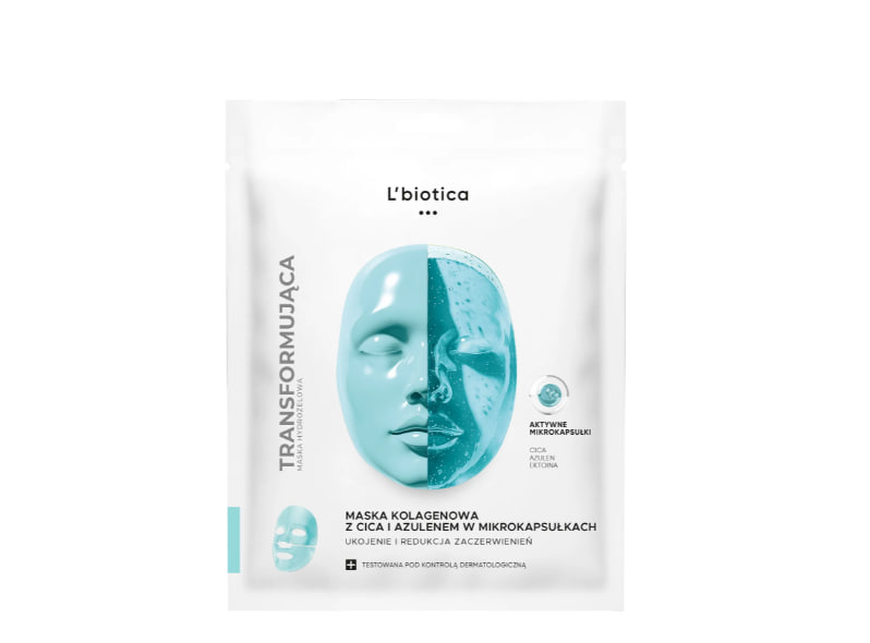 L'biotica, трансформирующая коллагеновая маска с центеллой азиатской и азуленом в микрокапсулах, 1 шт. новинки