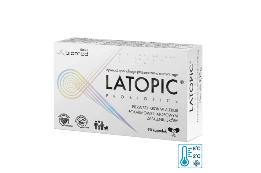 Эксплуатация и свойства Latopic содержит 3 польских, живых и запатентованных штамма молочнокислых бактерий рода Lactobacillus. Молочнокислые бактерии, используемые в рационе, могут способствовать повышению герметичности кишечного барьера, поддержанию микробиологического и иммунологического баланса в организме и стимуляции секреции слизи. Молочнокислые бактерии могут оказывать благотворное влияние на течение атопического дерматита, облегчая тяжесть кожных поражений. Штаммы, включенные в шоу Latopic: устойчивость к низкому рН в желудке и желчным солям, прилипание к эпителиальным клеткам кишечника, производство веществ, обладающих активностью в отношении: Pseudomonas aeruginosa, Staphylococcus aureus, Escherichia coli, Salmonella Enteritidis, Salmonella Typhimurium, Listeria innocua, Listeria monocytogenes и Enterococcus faecalis устойчивость к антибиотикам характерна для бактерий из группы Lactobacillus casei/rhamnosus. Латопик, капсулы, не содержит молочного белка, лактозы и глютена.
