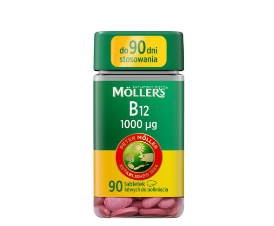 Описание продукта Mӧller's B12 1000 µg — это пищевая добавка в форме таблеток, разработанная для взрослых , желающих дополнить свой ежедневный рацион витамином B12 в форме цианокобаламина. Витамин B12 – действие Витамин B12 играет ключевую роль в правильном функционировании организма: Это способствует поддержанию нормального энергетического обмена и уменьшению чувства усталости и утомления. Способствует правильному функционированию нервной системы. Способствует поддержанию нормальных психологических функций. Способствует правильному функционированию иммунной системы. Он играет роль в правильном производстве красных кровяных клеток. Способствует поддержанию нормального метаболизма гомоцистеина. Играет роль в процессе деления клеток. Почему стоит выбрать таблетки витамина B12 от Moller's (90 таблеток)? Удобная добавка – всего 1 таблетка в день. Таблетки в форме ямки , которые легко проглотить.