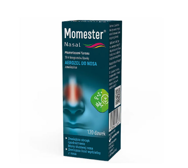 Описание продукта Назальный спрей Momester 50 мкг/доза, 120 доз, предназначен для взрослых, страдающих сезонным аллергическим ринитом (сезонным аллергическим ринитом или сенной лихорадкой ). В состав препарата входит мометазона фуроат, который облегчает симптомы воспаления (отек, раздражение слизистой оболочки носа), чихания, зуда и заложенности носа, а также уменьшает количество выделений из носа. Показания Препарат применяется в случаях чрезмерной заложенности слизистых оболочек (возникающей при сенной лихорадке и аллергическом рините).