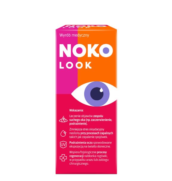 Приложение Для глазных капель Noko Look можно использовать: для лечения симптомов синдрома сухого глаза (например, покраснения, раздражения); в качестве вспомогательного лечения конъюнктивита для снижения окислительного стресса, связанного с воспалительными процессами; при раздражении глаз, вызванном воздействием солнечного света; в случае травмы или хирургического вмешательства для поддержания физиологических процессов регенерации эпителия роговицы.