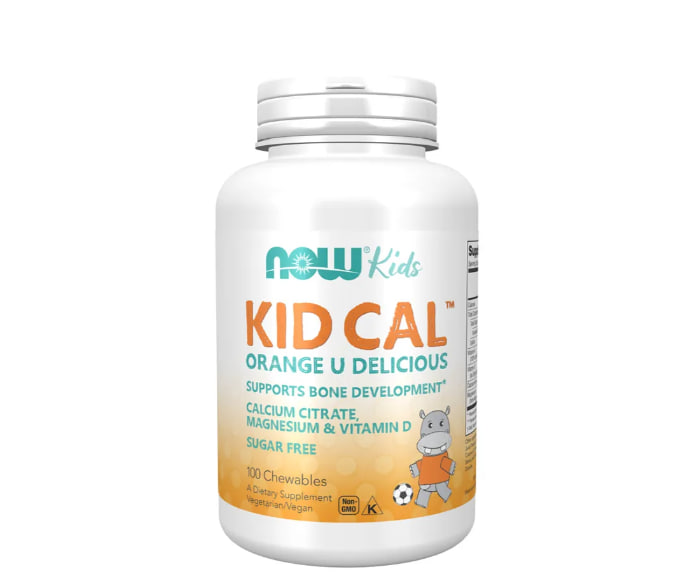 Описание продукта Now Foods Kids Kid Cal™ — это пищевая добавка для детей старше 3 лет , содержащая кальций, магний и витамин D , а также витамин А в форме бета-каротина . Продукт выпускается в виде жевательных таблеток со вкусом апельсина , что облегчает их регулярное применение для малышей. Кальций и витамин D — минералы, особенно важные в периоды быстрого роста. Кальций и витамин D помогают поддерживать здоровье костей и зубов , а витамин D способствует правильному усвоению кальция и фосфора . Магний играет роль в правильном функционировании мышц и нервной системы. В состав этого продукта входят цитрат кальция и цитрат магния , формы которых хорошо переносятся в пище. Таблетки подслащены ксилитом и стевиолгликозидами, не содержат глютена и генетически модифицированных организмов.