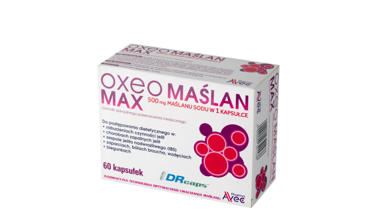 Кому предназначен препарат Oxeo Butyrate Max 500 mg? Продукт предназначен для: взрослые дети от 7 лет Это польский веганский продукт с высоким содержанием бутирата натрия, разработанный с использованием передовой технологии высвобождения для поддержания функции кишечника и комфортного пищеварения.