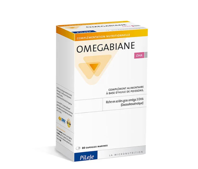 Описание продукта PiLeJe Omegabiane DHA — это пищевая добавка, обеспечивающая здоровую дозу омега-3. Эта формула в капсулах идеально подходит для дополнения ежедневного рациона взрослых докозагексаеновой и эйкозапентаеновой кислот, полученных из рыбьего жира. Капсулы Омегабиан ДГК Высококачественный рыбий жир. В максимальной суточной дозе содержится более 1000 мг ДГК. Без глютена и лактозы. Омега-3 жирные кислоты — это незаменимые жирные кислоты (НЖК), необходимые в ежедневном рационе. Докозагексаеновая кислота (ДГК) способствует поддержанию нормального зрения и функций головного мозга. Благоприятный эффект достигается при ежедневном приеме 250 мг ДГК. В упаковке содержится 80 капсул Omegabiane DHA, предназначенных для обеспечения организма необходимым количеством омега-3 DHA.