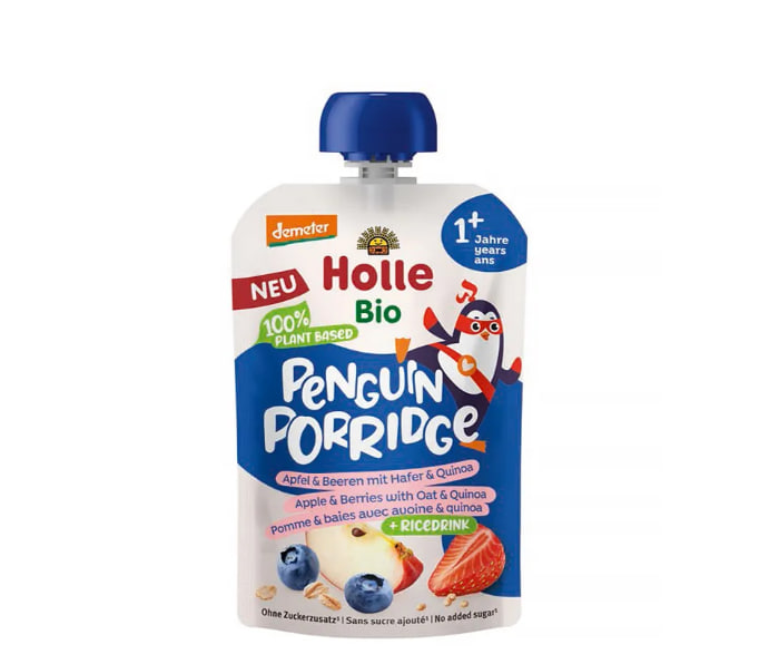 Описание продукта Органическая овсяная каша Holle Organic Penguin с яблоком, черникой, овсянкой и киноа — это пюре из рисового напитка и злаков , состав и консистенция которого подходят для детей от 1 года. Ее можно подавать в качестве десерта или полезного перекуса между приемами пищи. Благодаря практичной, легкой и многоразовой упаковке, она идеально подходит для перекусов на ходу — в дороге, на прогулке или на детской площадке. Овсяная каша Holle Bio Penguin в тюбике с фруктами – яблоко и ягоды с овсянкой и киноа Для детей старше 12 месяцев. Напиток на 100% растительной основе, состоящий из риса, овса и киноа. 100% органический продукт. С добавлением фруктов : яблок, клубники и черники, выращенных по биодинамическим методам (Demeter). Без добавления сахара *** – содержит только натуральные сахара и сахара, полученные в результате гидролиза риса. Без лактозы. Подходит для веганов и вегетарианцев.