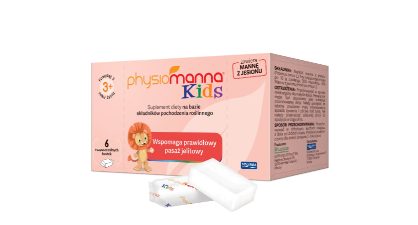 Описание продукта Physiomanna Kids — это пищевая добавка в форме растворимых кубиков, предназначенная для детей старше 3 лет. Продукт создан для дополнения ежедневного рациона маннитом и золой манны ( Fraxinus ornus L.) в удобной и простой в применении форме. Physiomann Kids – откройте для себя преимущества