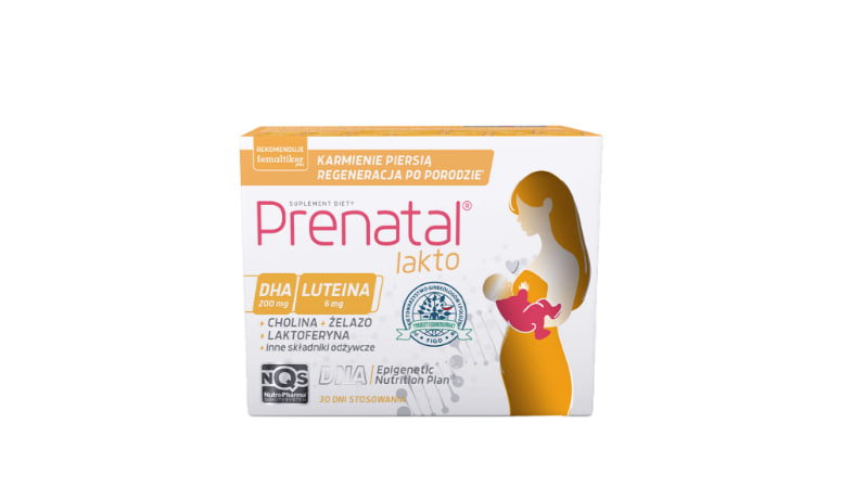 Описание продукта Prenatal ® Lacto — это биологически активная добавка для женщин в послеродовой период и в период грудного вскармливания, предназначенная для дополнения их ежедневного рациона ценными питательными веществами. Она сочетает в себе две формулы: Prenatal ® Lacto 1 (твердые капсулы) и Prenatal ® Lacto 2 (мягкие капсулы). Что содержит Prenatal ® lacto — биологически активная добавка в капсулах для кормящих женщин? Твердая капсула Prenatal® lacto 1 позволяет дополнить ваш ежедневный рацион, среди прочего, активной формой фолиевой кислоты – L-метилфолатом кальция , витамином D, витамином B6 и готовой к употреблению метилированной формой витамина B12 (метил B12), а также микрокапсулированным железом, йодом, холином, мио-инозитолом и лактоферрином из коровьего молока. Приём фолиевой кислоты повышает концентрацию фолата в организме матери. Фолат также способствует правильному синтезу аминокислот и участвует в кроветворении. Фолат также участвует в процессе деления клеток. Метилированный фолат при пероральном приёме не требует дополнительного метаболизма и может немедленно транспортироваться к клеткам-мишеням. Каждая твёрдая капсула содержит 800 мкг фолата, что составляет 400% от рекомендуемой суточной нормы потребления этого вещества. Фолаты, витамины B6 и B12 помогают поддерживать нормальные психологические функции. Фолиевая кислота, витамины B6, B12 и железо способствуют снижению утомляемости и усталости. Витамины B6, B12 и йод поддерживают правильное функционирование нервной системы и вместе с железом способствуют поддержанию нормального энергетического обмена. Фолиевая кислота, витамины B6, B12 и D, а также железо способствуют нормальной работе иммунной системы. Витамин D также способствует поддержанию здоровья костей и зубов, а также нормальной работе мышц. Витамины B6 и B12, а также железо, способствуют нормальному образованию эритроцитов. Железо также способствует нормальному образованию гемоглобина и переносу кислорода в крови. Витамин B12, наряду с витамином B6 и холином, способствует нормальному синтезу цистеина. Холин также поддерживает нормальную функцию печени, а витамин B12 играет роль в процессе деления клеток. Йод необходим для поддержания нормальной функции щитовидной железы. Желатиновые капсулы Prenatal® lacto 2 содержат высококачественный рыбий жир, бета-каротин и экстракт бархатцев прямостоячих ( Tagetes erecta L. ), стандартизированный по лютеину и зеаксантину. Рыбий жир является натуральным источником докозагексаеновой кислоты (ДГК), омега-3 жирной кислоты. Приём матерью докозагексаеновой кислоты (ДГК) способствует нормальному развитию мозга и глаз плода и грудного ребёнка.