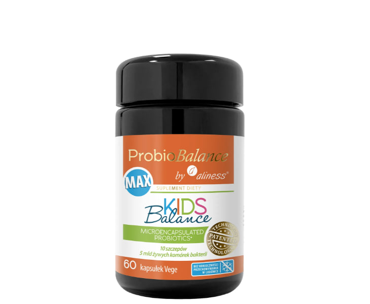 Описание продукта ProbioBalance Kids Balance Max — это пищевая добавка в форме веганских капсул, предназначенная для применения у детей от 1 года. Чем отличается добавка ProbioBalance Kids Balance Max от других подобных продуктов? В одной капсуле содержится 5 миллиардов бактерий. Каждая бактерия была покрыта двойным липидным слоем. Данный продукт подходит для веганов.