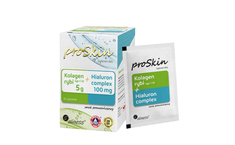 Описание продукта Рыбий коллаген ProSkin 5 г + комплекс гиалуроновой кислоты 100 мг — это биологически активная добавка в удобных пакетиках с приятным апельсиновым вкусом. Этот продукт предназначен для дополнения ежедневного рациона взрослых. Рыбий коллаген ProSkin 5 г + комплекс гиалуроновой кислоты 100 мг — узнайте больше о составе Коллаген — это белок, вырабатываемый организмом и составляющий примерно 30% всех белков человека.