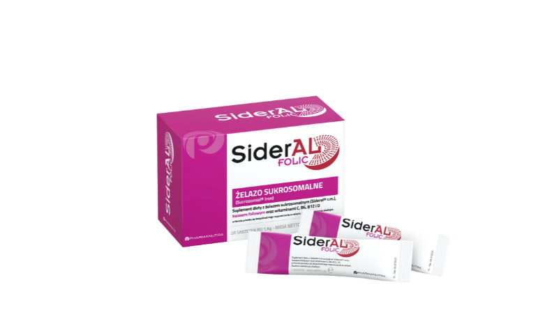 Описание продукта SiderAL Folic — это биологически активная добавка с сахаросомальным железом в форме пакетиков-порошка для немедленного растворения во рту. Она дополняет ваш ежедневный рацион ценными питательными веществами, такими как железо и витамины (C, D, B6 , B12 и фолиевая кислота). Ингредиенты продукта SiderAL Folic Сукросомальное железо (Сидерал® рм – Sucrosomial® Iron ) поступает в желудок в неизмененном виде, а затем всасывается в кишечнике, поэтому не оказывает отрицательного влияния на работу пищеварительной системы. Железо способствует нормальному образованию эритроцитов и гемоглобина, а также нормальному транспорту кислорода в организме. Вместе с витамином С оно способствует снижению утомляемости и усталости. Кроме того, витамин С улучшает усвоение железа . Витамины B6 и B12 способствуют нормальному образованию эритроцитов. Витамин B12 участвует в процессе деления клеток. Фолиевая кислота способствует нормальному кроветворению. Витамины C , B6 , B12 , D и фолиевая кислота способствуют правильному функционированию иммунной системы.