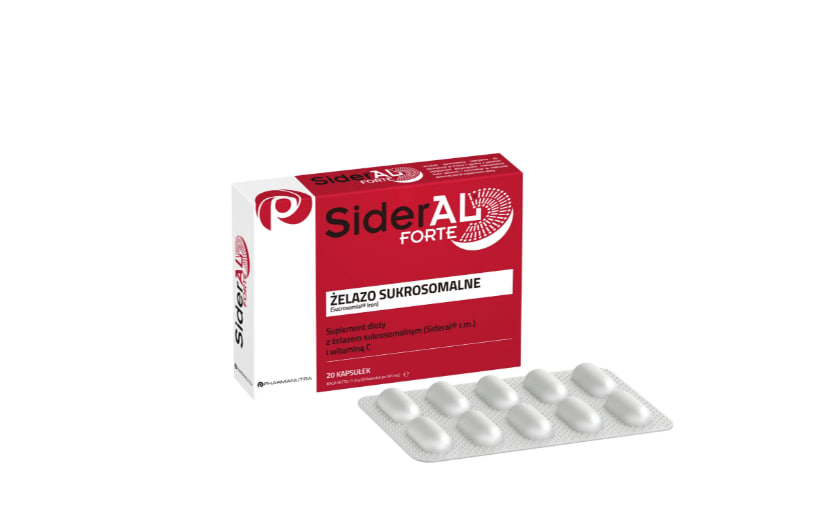 Описание продукта SiderAL Forte — это биологически активная добавка в форме капсул, содержащая сахаромальное железо и витамин С. Этот продукт предназначен для людей, желающих дополнить свой ежедневный рацион ценными веществами. Сахаромальное железо (Sideral® rm – Sucrosomial® Iron ) поступает в желудок в неизмененном виде и затем всасывается в кишечнике, поэтому не оказывает негативного влияния на функцию пищеварения. Биологически активная добавка SiderAL Forte – действие ингредиентов Железо помогает при: правильное производство эритроцитов и гемоглобина, правильный транспорт кислорода в организме, правильное функционирование иммунной системы. Кроме того, он помогает уменьшить чувство усталости и утомления и играет роль в процессе деления клеток. Витамин С увеличивает усвоение железа и помогает защитить клетки от окислительного стресса.