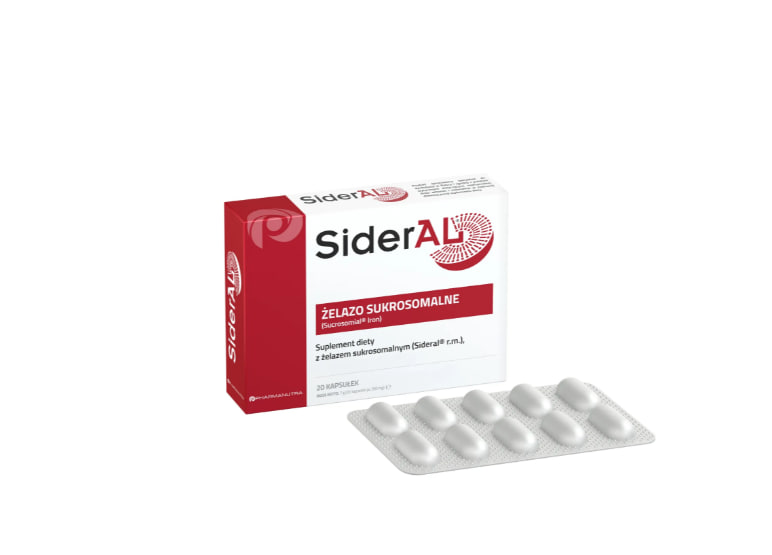Описание продукта SiderAL — это биологически активная добавка с сахаросомальным железом в форме капсул, предназначенная для людей, желающих дополнить свой ежедневный рацион железом, витамином С и витамином B12. Продукт содержит сахаросомальное железо (Sideral® rm – Sucrosomial® Iron ), которое поступает в желудок в неизмененном виде и затем всасывается в кишечнике, поэтому не оказывает негативного влияния на функцию пищеварения.