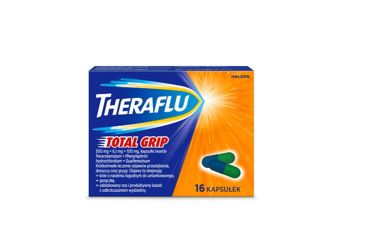 Theraflu Total Grip 500 мг + 6,1 мг + 100 мг, 16 капсул - описание продукта
