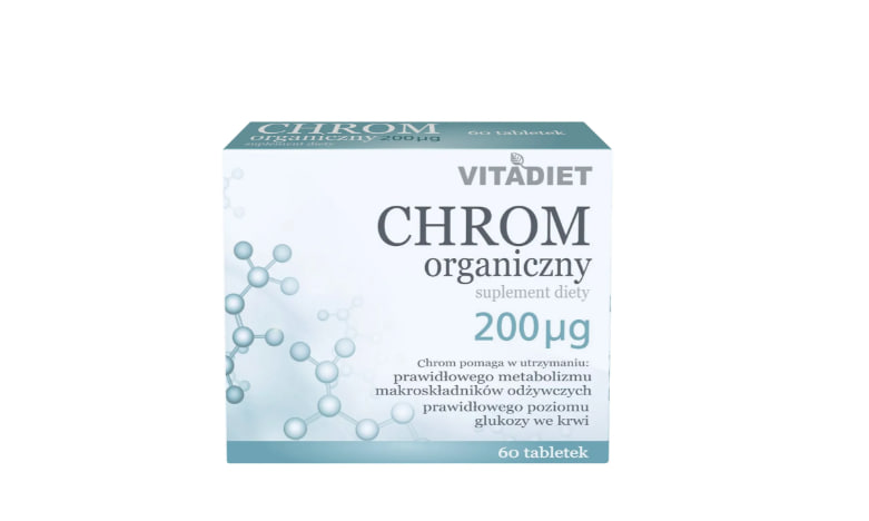 Описание продукта Vitadiet Organic Chromium — это биологически активная добавка в таблетках для взрослых. Рекомендуемая суточная доза содержит 200 мкг этого ценного питательного вещества, что составляет 500% от рекомендуемой суточной нормы потребления этого элемента. Что делает Vitadiet Chrome уникальным? Содержит органическую, высокобиодоступную форму хрома – пиколинат. Маленькие, легко проглатываемые таблетки.