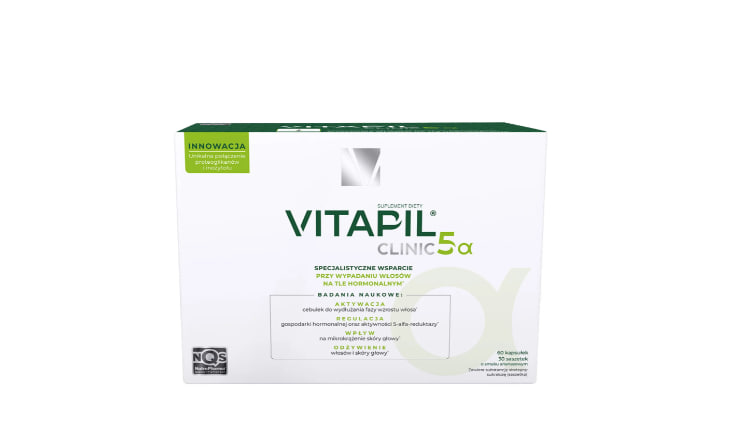 Упаковка Vitapil® Clinic 5alfa содержит 30 пакетиков + 60 капсул , что обеспечивает ежедневную суточную норму потребления для одного взрослого человека в течение месяца .