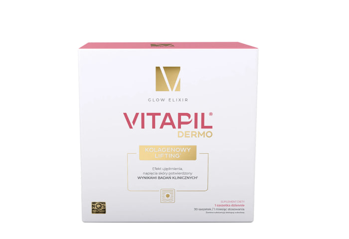 Vitapil ® Dermo Collagen Lifting – ингредиенты и их свойства Коллаген – жизненно важный компонент человеческого организма. Он составляет почти 30% всех белков. Он является основным структурным компонентом кожи, ногтей, волос, суставов , костей , десен и соединительных тканей. С возрастом выработка коллагена в организме снижается, что можно компенсировать с помощью сбалансированного питания и приема пищевых добавок. Интересным решением для дополнения ежедневного рациона коллагеном является польский препарат Vitapil® Collagen Lifting. Коллаген, используемый в этом препарате, благодаря гидролизу образует небольшие пептиды с молекулярной массой 2 кДа, что облегчает его усвоение организмом. Витамин С способствует правильной выработке коллагена, обеспечивающего нормальное функционирование костей, хрящей и кожи. L-цистин — аминокислота, образующаяся путем соединения двух молекул цистеина посредством дисульфидного мостика. Для достижения заявленного положительного эффекта рекомендуется употреблять содержимое одного пакетика препарата ежедневно, предварительно растворив его в воде.