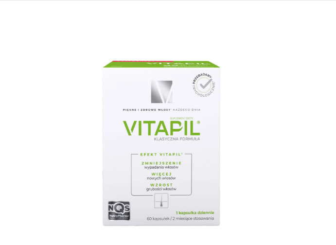 Подходит для вегетарианцев. Что содержит Vitapil® ? – наиболее важные ингредиенты и их действие. Цинк способствует нормальному синтезу белка, поддерживая здоровье кожи, волос и ногтей. Он также способствует нормальному метаболизму витамина А. Биотин, ниацин и йод помогают поддерживать здоровье кожи, в том числе кожи головы. Биотин помогает поддерживать здоровье волос, а медь помогает поддерживать правильную пигментацию волос. Цинк, медь и марганец помогают защитить клетки от окислительного стресса. Цинк, витамин В12 и фолаты участвуют в процессе деления клеток. Для достижения заявленного положительного эффекта достаточно принимать одну капсулу Vitapil® в день. Упаковка из 60 капсул обеспечивает двухмесячную ежедневную норму потребления для одного взрослого человека ингредиентов, необходимых для здоровья волос, кожи и ногтей.