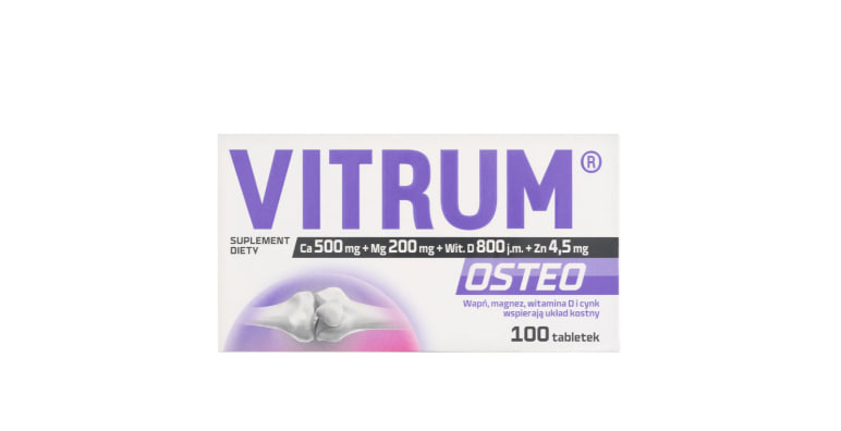 Описание продукта Vitrum® Osteo — это пищевая добавка в форме таблеток, содержащая кальций из раковин морских устриц, витамин D3, магний и цинк . Она предназначена для дополнения ежедневного рациона взрослых активными ингредиентами. Ознакомьтесь с составом Vitrum® Osteo . Кальций, магний и витамин D помогают поддерживать здоровье костей и зубов, а также правильную работу мышц. Витамин D способствует поддержанию нормального уровня кальция в крови и вносит вклад в работу иммунной системы организма . Кроме того, витамин D3 отвечает за поддержание нормальной мышечной силы. Кальций участвует в процессе деления и специализации клеток, способствует правильному свертыванию крови и помогает поддерживать нормальную нейротрансмиссию. Магний способствует правильному функционированию нервной системы и поддержанию электролитного баланса, поддерживает нормальный энергетический обмен и способствует снижению усталости и утомления. Цинк помогает поддерживать здоровье костей, волос, ногтей и кожи, способствует правильному функционированию иммунной системы и защищает клетки от окислительного стресса.